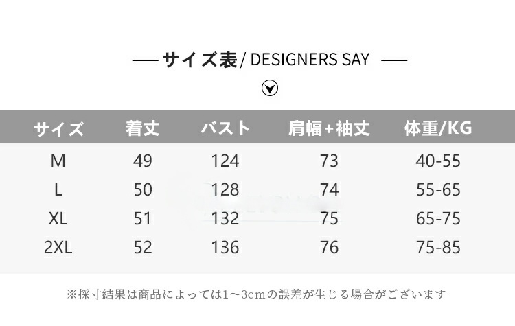サイズ(CM) 【M】着丈49 バスト124 肩幅+袖丈73 体重参考40~55kg