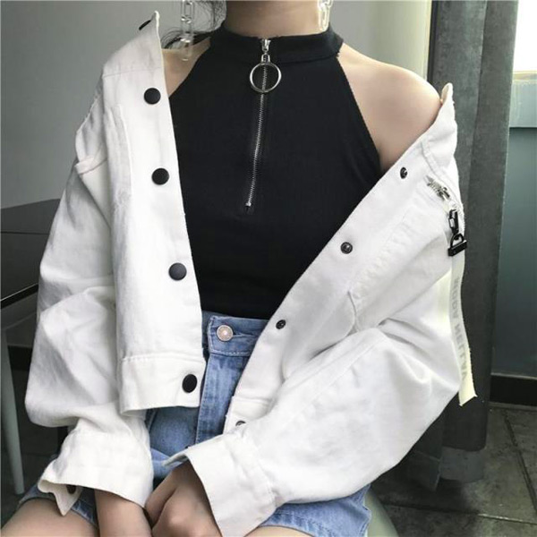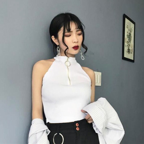 ニットソー ノースリーブ クロップド丈 レディースファッション 通販 ホワイト ブラック Sサイズ Mサイズ