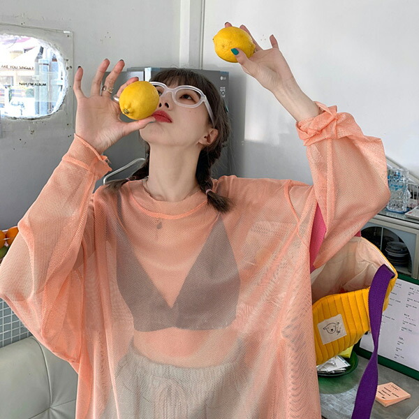 シアートップス 透けトップス 透けTシ レディースファッション 特集 ホワイト ピンク イエロー グリーン ライトブルー ブルー オレンジ ワンサイズ