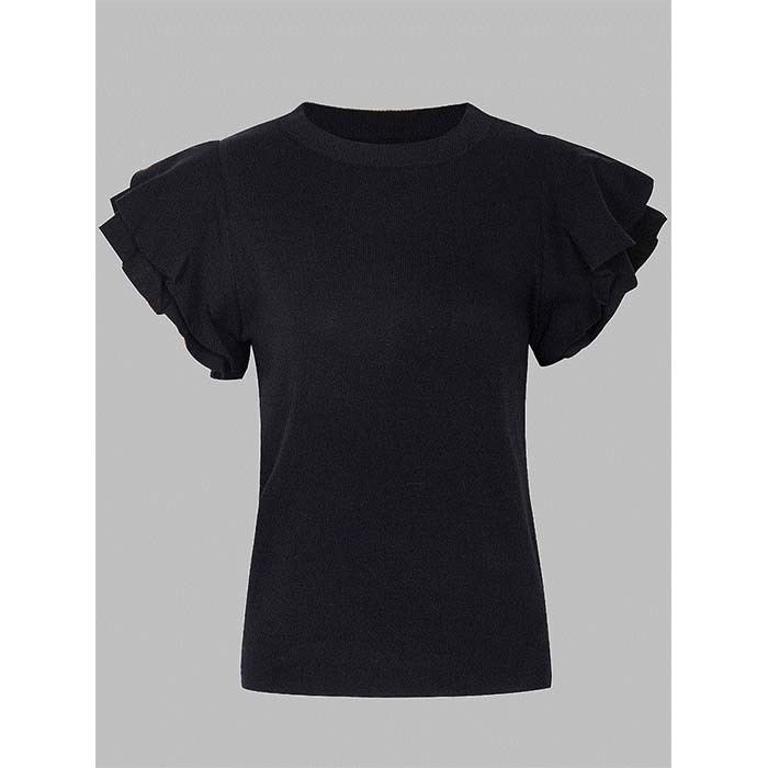フリル サマー 秋 ニット トップス トップス シャツ ブラウス 続々登場 black white