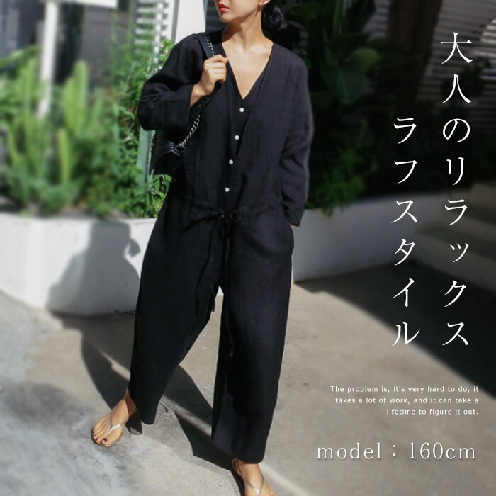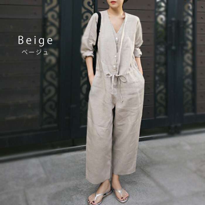 オールインワン レディース 長袖 春夏 オールインワン サロペット 早い者勝ち ベージュ ブラック Regular Plus