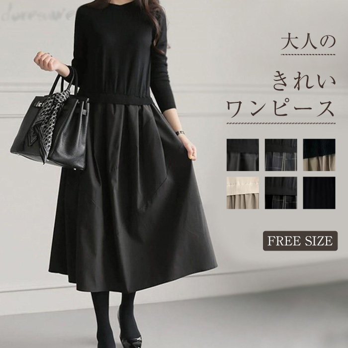 ワンピース きれいめ 秋冬 ロング 春 ワンピース 続々登場 無地-黒 チェック-グレー (new)ブラック+ベージュ (new)ベージュ (new)チェックー黒 (new)ブラック 【新色】ブラック(ウエスト調整可) 【新色】グレー(ウエスト調整可)