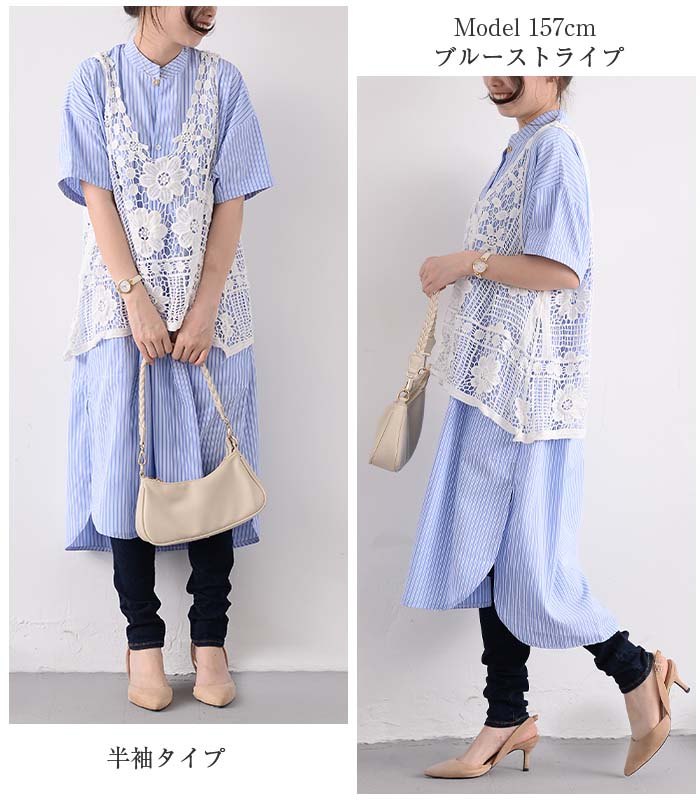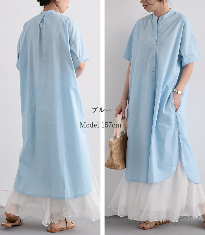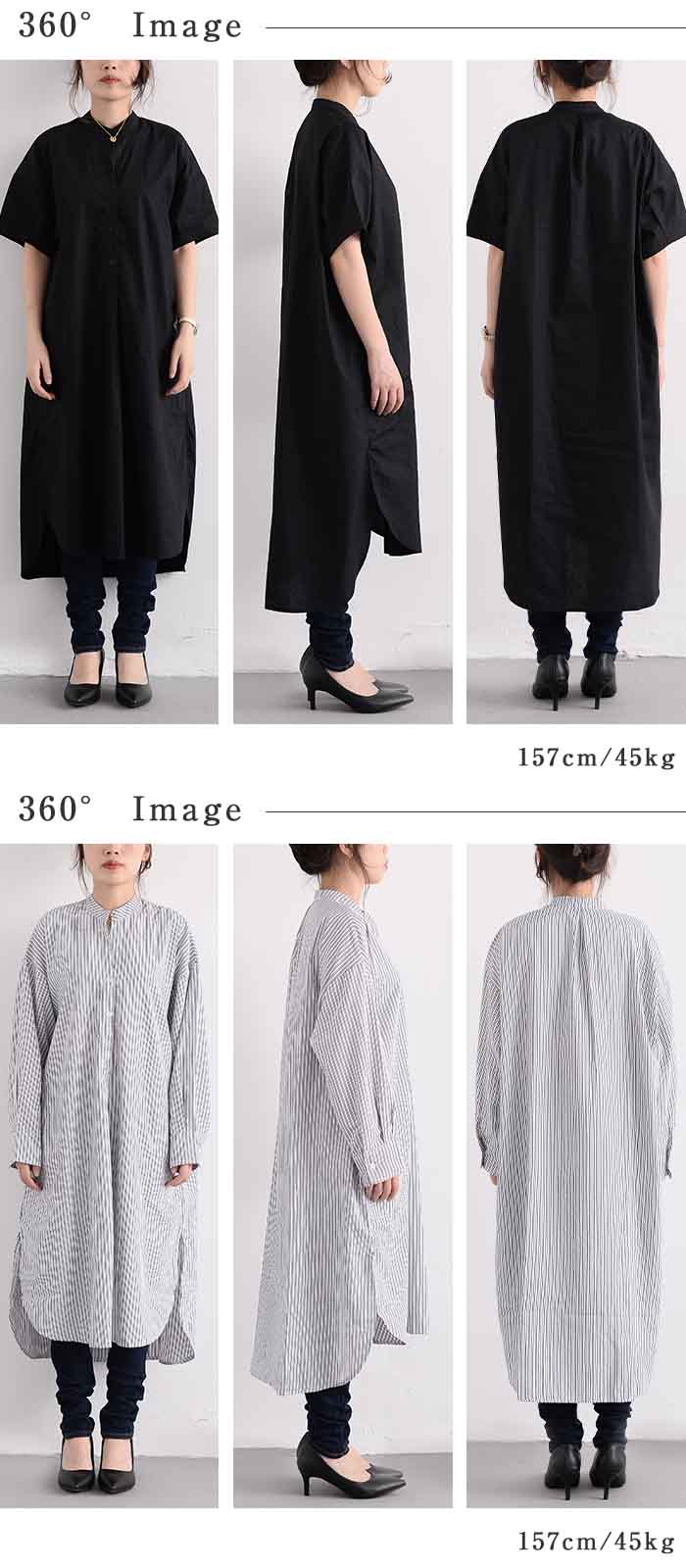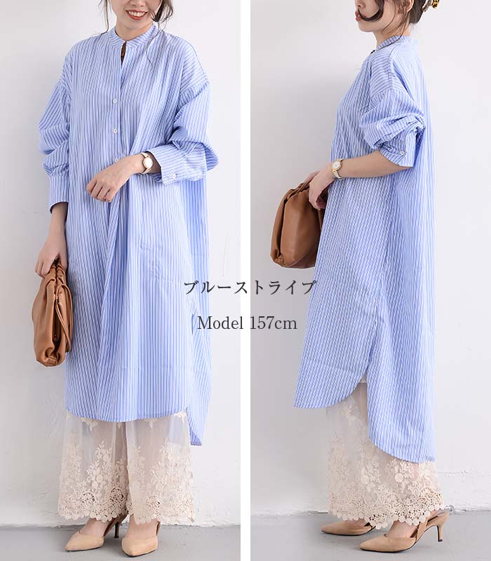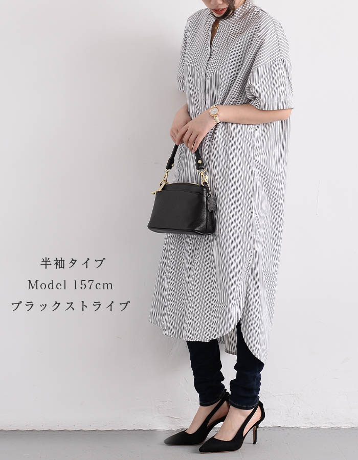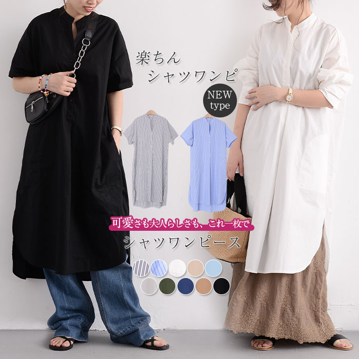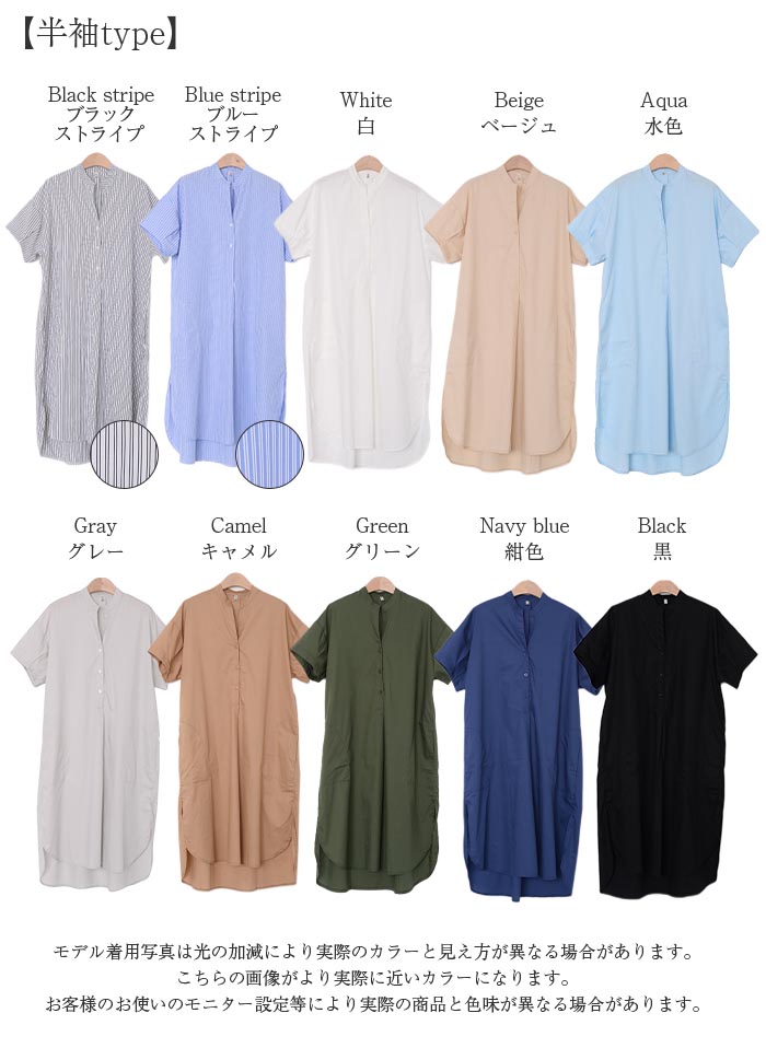 シャツワンピース ロングシャツワンピー 長袖 【半袖追加】 黒 白 グレー ベージュ キャメル 水色 グリーン 紺色 (New)ブラック ストライプ (New)ブルー ストライプ