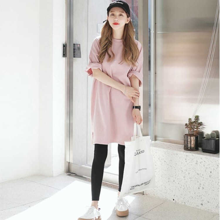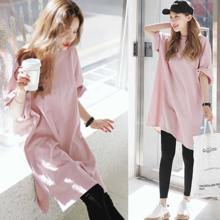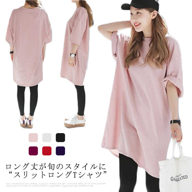 Tシャツ ワンピース 半袖 サイドスリ トップス Tシャツ カットソー 通販 ピンク ホワイト ブラック ワインレット オレンジ パープル M L XL 2XL
