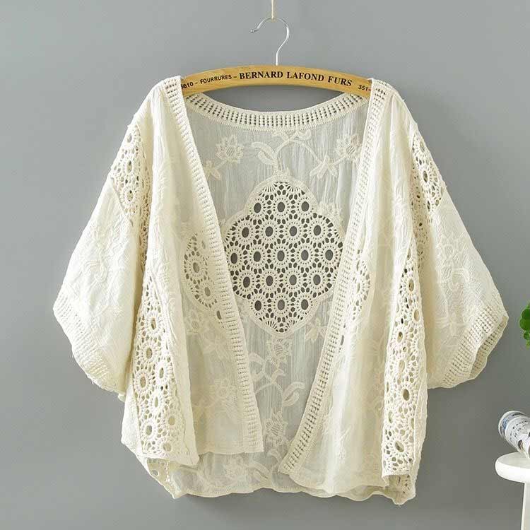 カーディガン レディース 刺繍 透かし レディースファッション 新作 ホワイト ベージュ