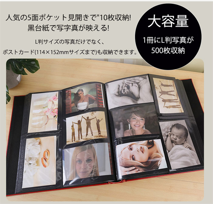 フォトアルバム L判サイズ見開き10ポ ブラック レッド ダークレッド オレンジ コーヒー ベージュ ブルー