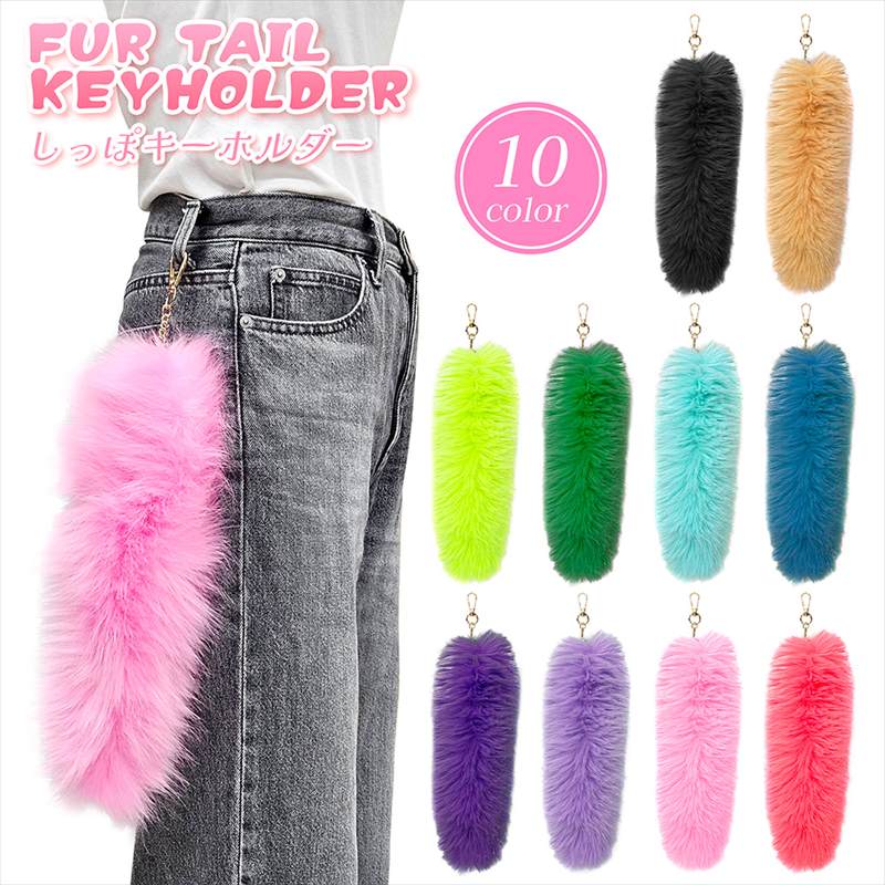 しっぽ キーホルダー ギャル Y2K バッグ バッグ用アクセサリー バッグチャーム 早い者勝ち ピンク ライトピンク ライトパープル ミント 蛍光イエロー グリーン パープル ブルー ベージュ ブラック