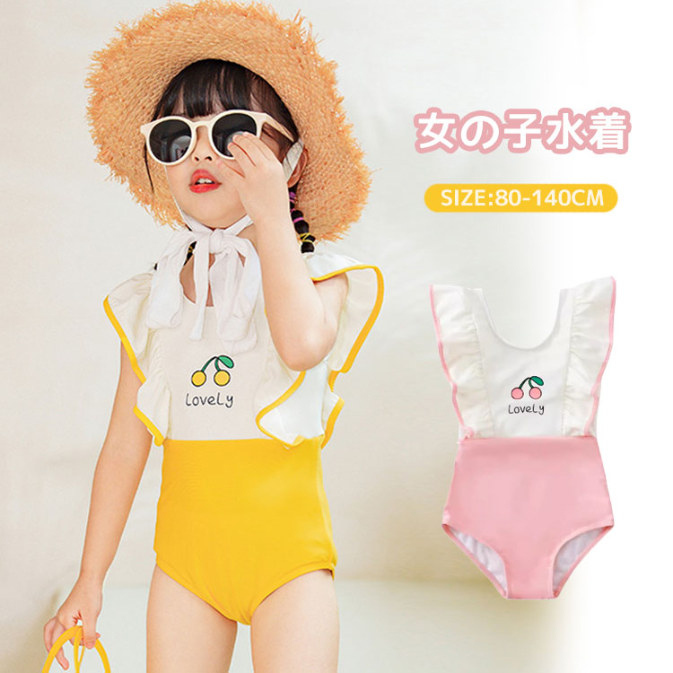 キッズ 水着 女の子 ワンピース ガー キッズ ベビー マタニティ 新登場! イエロー ピンク M(参考身長95-105cm) L(参考身長105-115cm) XL(参考身長115-125cm) 2XL(参考身長125-135cm) 3XL(参考身長135-145cm)