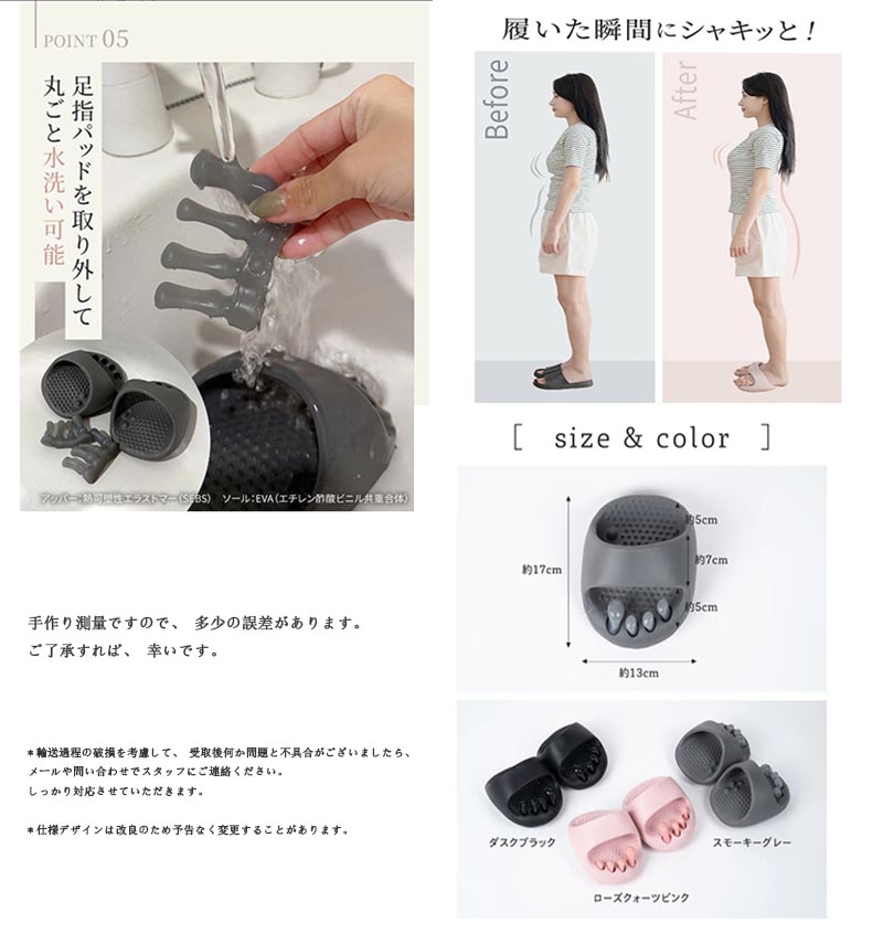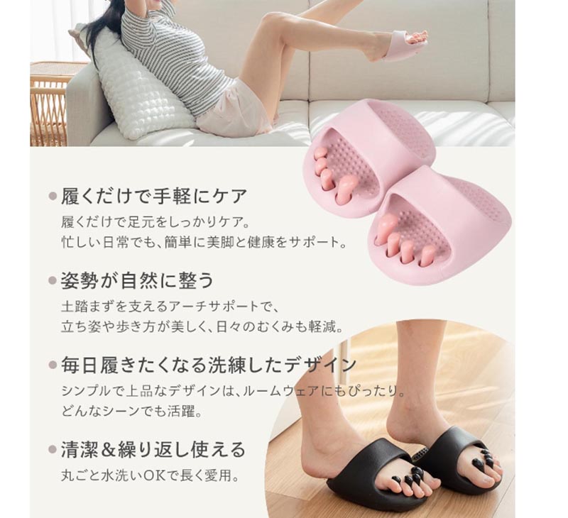 5本指スリッパ ラディアンヌ ツボ押し 日用品雑貨 文房具 手芸 超目玉商品 ダスクブラック スモーキーグレー ダックピンク ライトピンク