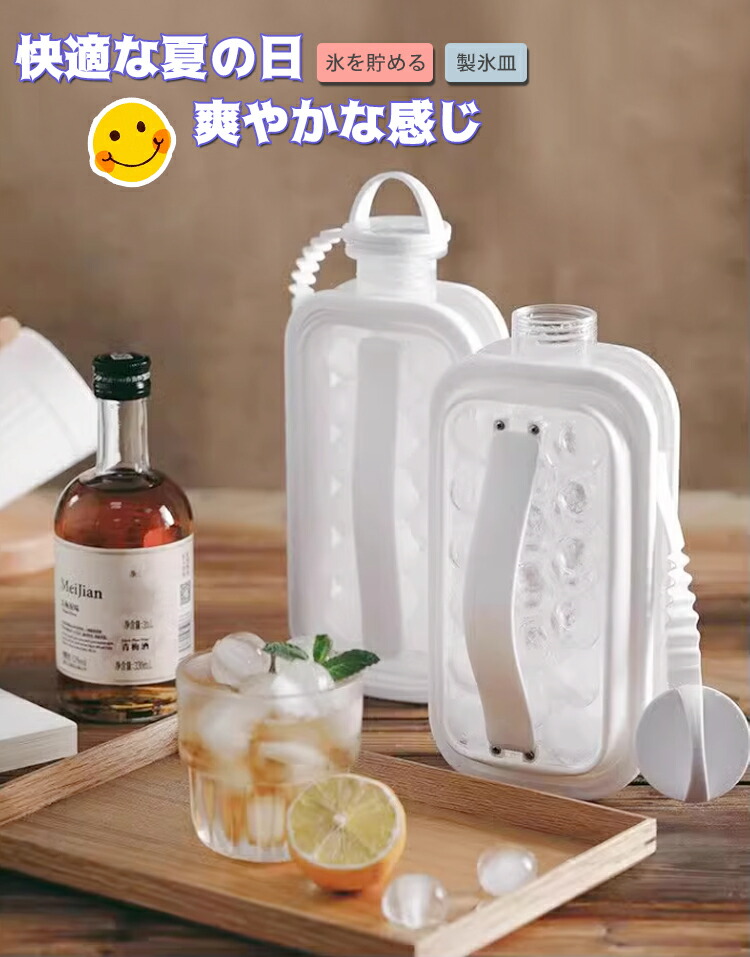 製氷皿 アイスブレーカー 水筒 氷 アイスボール アイストレー 2way 製氷器 シリコン 透明 氷作る容器 フタ付き 製氷ケース 製氷トレー 夏休み 保冷ボトル 持ち運べる 大量 ビール 保存ケース