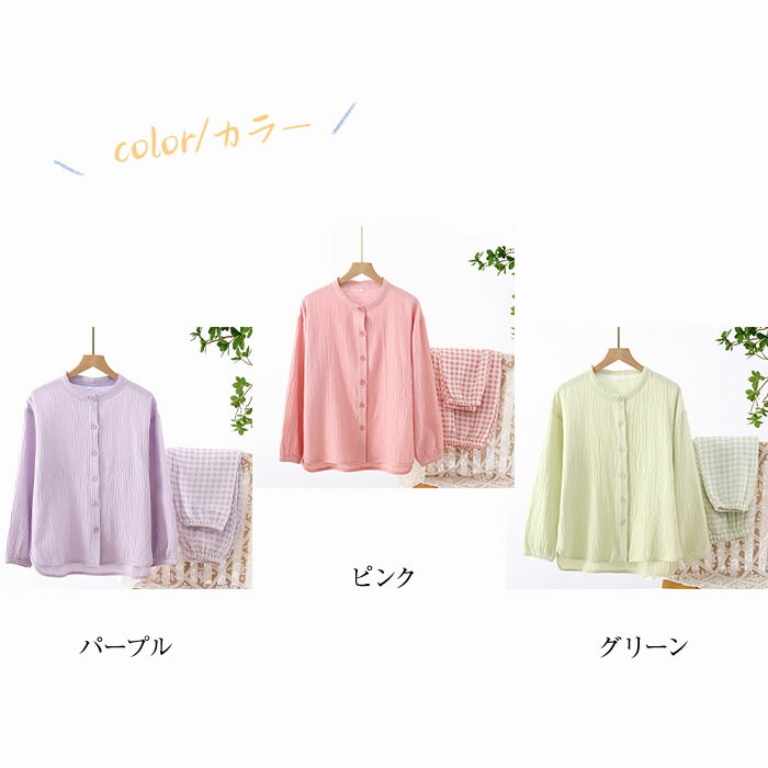 パジャマ ダブルガーゼ レディース ル インナー 下着 ナイトウエア 人気 ピンク グリーン パープル M L XL