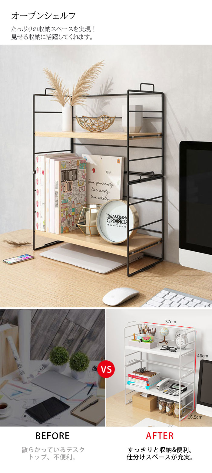 デスク上 棚 ラック 卓上 ミニラック ウッド色棚板+白色フレーム ウッド色棚板+ブラック色フレーム ブラック色棚板+ブラック色フレー 白色棚板+白色フレーム ブラッククルミ色棚板+ブラック色