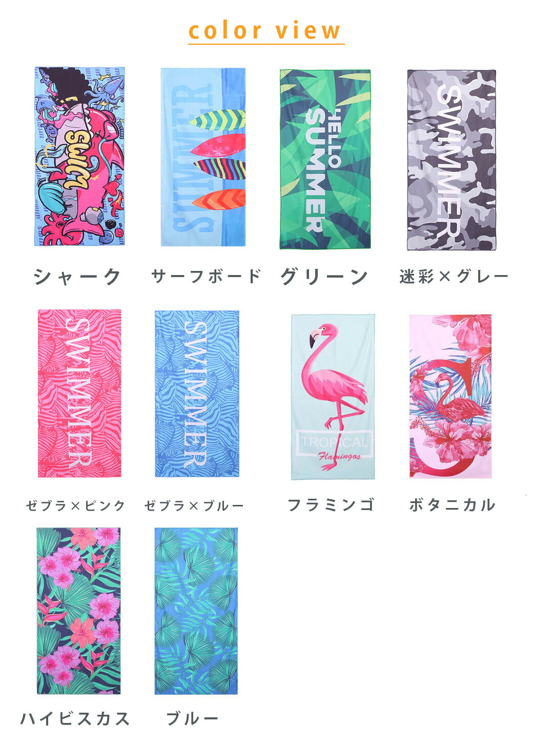 ビーチタオル スイムタオル 大判タオル 日用品雑貨 文房具 手芸 豊富な品揃え シャーク ブルー 迷彩×グレー ゼブラ×ピンク フラミンゴ ハイビスカス サーフボード ゼブラ×ブルー グリーン ボタニカル
