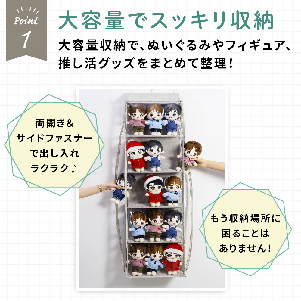 4段/5段の大容量収納で、ぬいぐるみやフィギュア、推し活グッズをまとめて整理!