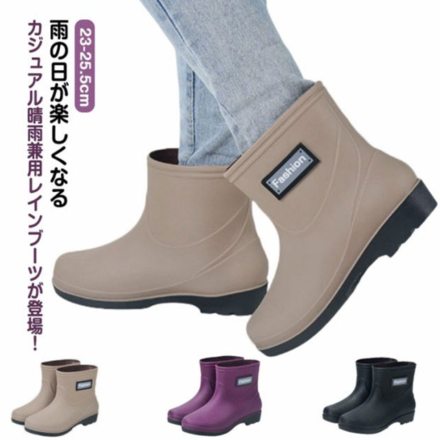 台風 完全防水 レインシューズ レディ 靴 大人気! ベージュ パープル ブラック 36(23cm) 37(23.5cm) 38(24cm) 39(24.5cm) 40(25cm) 41(25.5cm)