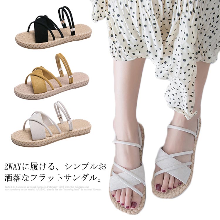 サンダル レディース フラットサンダル 靴 新作 ブラック オフホワイト イエロー 35 36 37 38 39 40