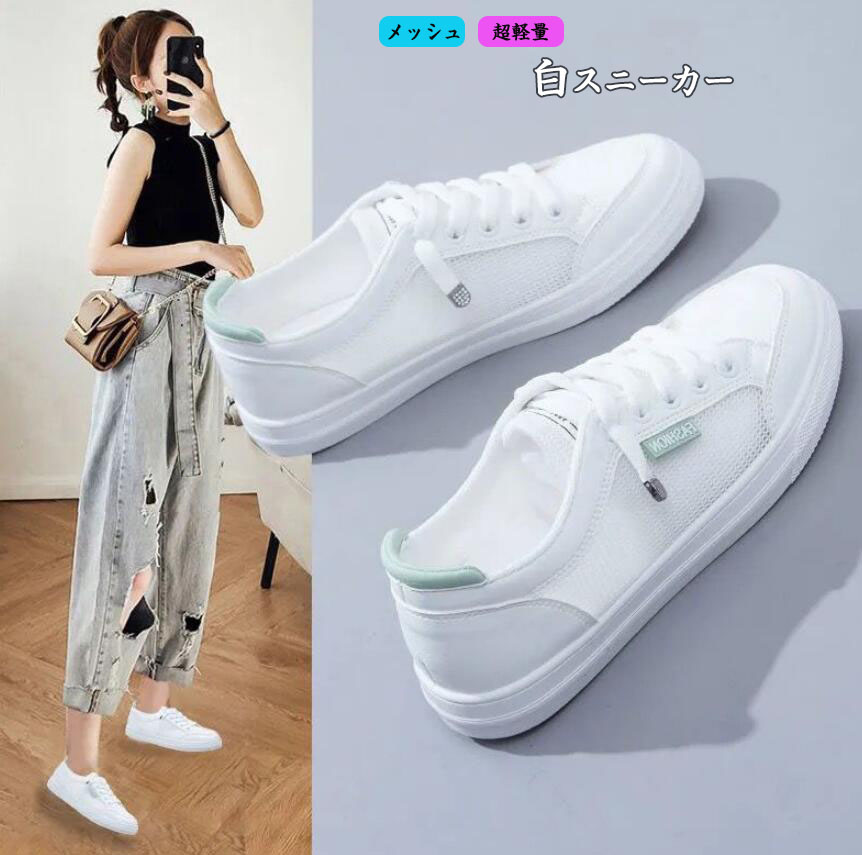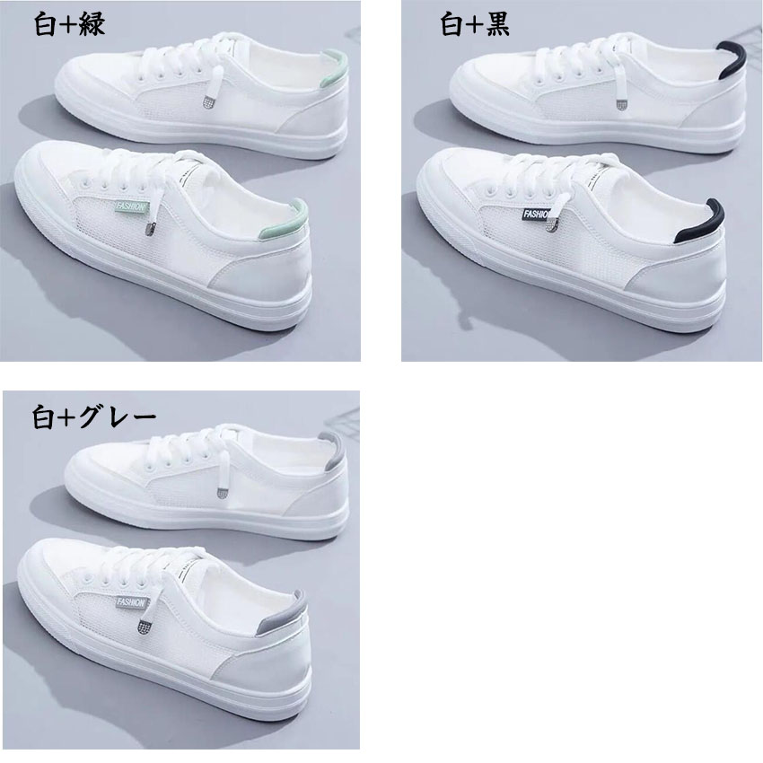 スニーカー レディース 白 メッシュ 靴 豊富 白+緑 白+黒 白+グレー 35(22.5cm) 36(23cm) 37(23.5cm) 38(24cm) 39(24.5cm) 40(25cm)