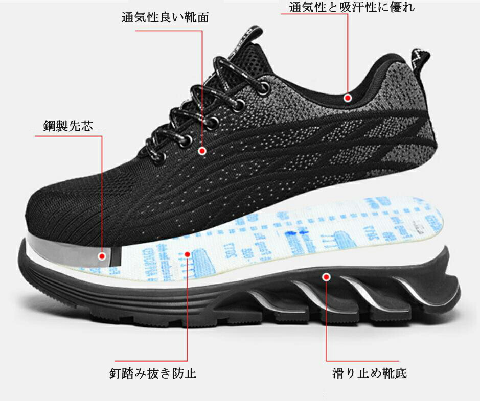 安全靴 レディース メンズ 作業靴 セ 黒+オレンジ 黒+グレー 黒+ブルー 黒+赤 36(23cm) 37(23.5cm) 38(24cm) 39(24.5cm) 40(25cm) 41(25.5cm) 42(26cm) 43(26.5cm) 44(27cm) 45(27.5cm) 46(28cm) 47(28.5cm) 48(29cm)