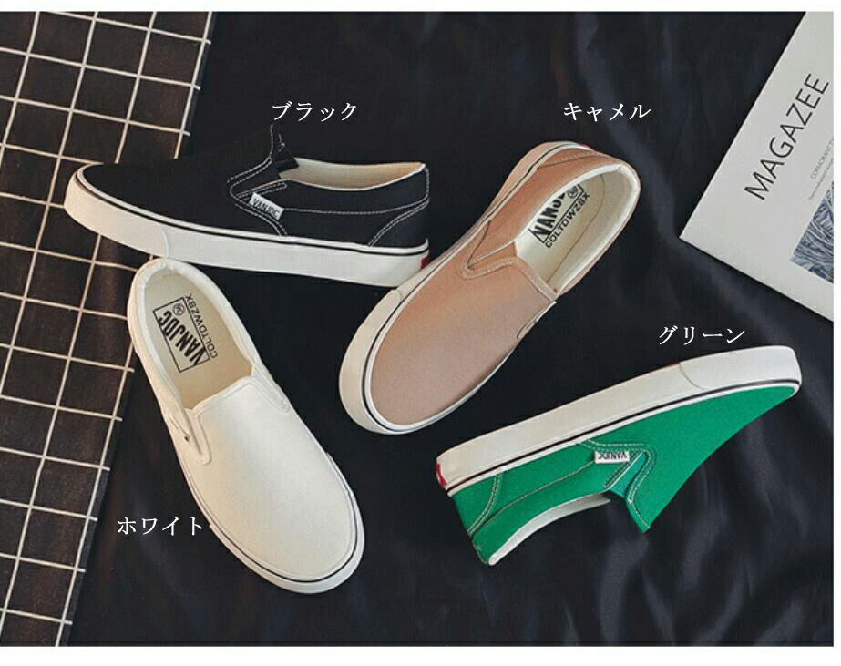 スリッポン レディース 白スニーカー レディース靴 スニーカー 通販 ホワイト ブラック キャメル グリーン 35(22.5cm) 36(23cm) 37(23.5cm) 38(24cm) 39(24.5cm) 40(25cm) 41(25.5cm) 42(26cm) 43(26.5cm) 44(27cm)