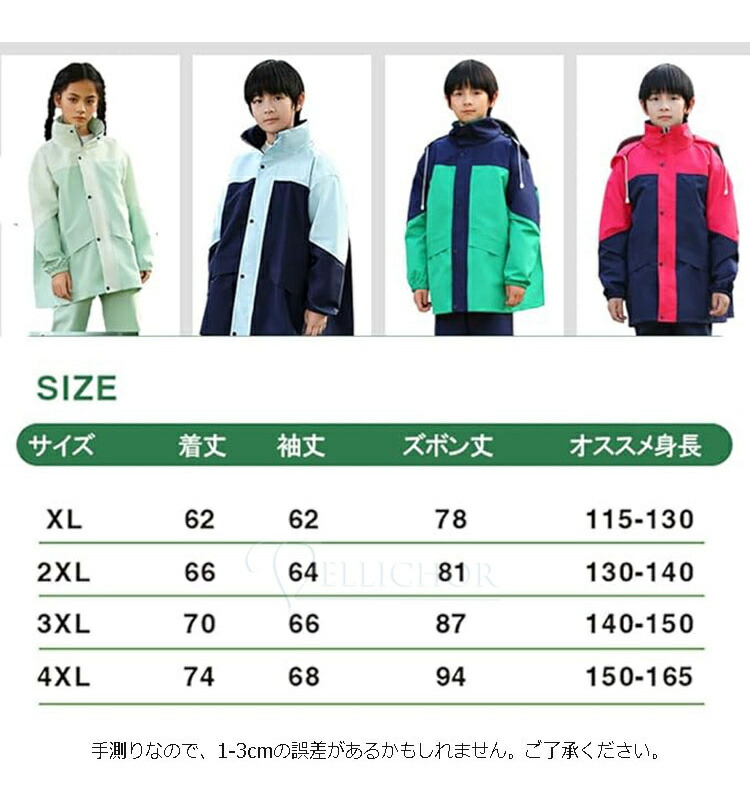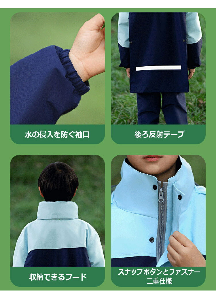 キッズ レインウエア レインスーツ 上 キッズ レインウェア 傘 レインコート 人気 グリーン ブルー ダークグリーン レッド XL 2XL 3XL 4XL