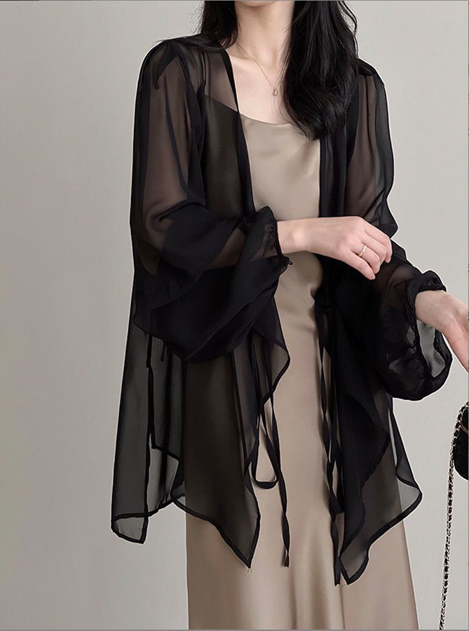 シアー シフォン カーディガン レディ トップス カーディガン ボレロ 続々入荷中 黒 ブラック 白 ホワイト 茶 ブラウン M L XL XXL