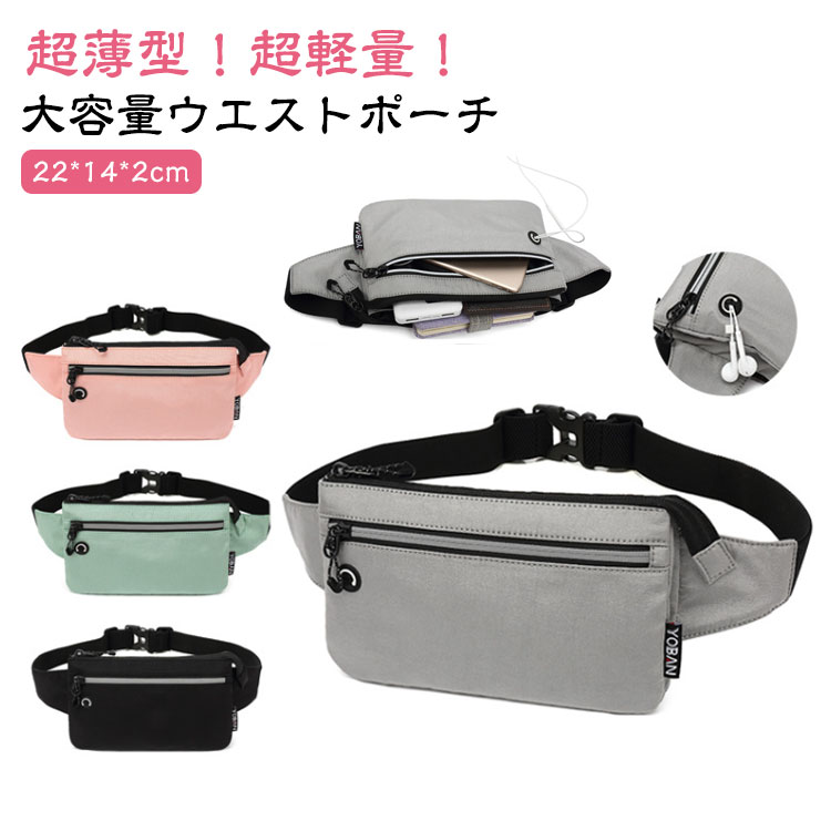 超薄型 超軽量 ウエストポーチ 防水 バッグ 男女兼用バッグ ボディバッグ ウエストポーチ 特集 ブラック グレー ピンク グリーン