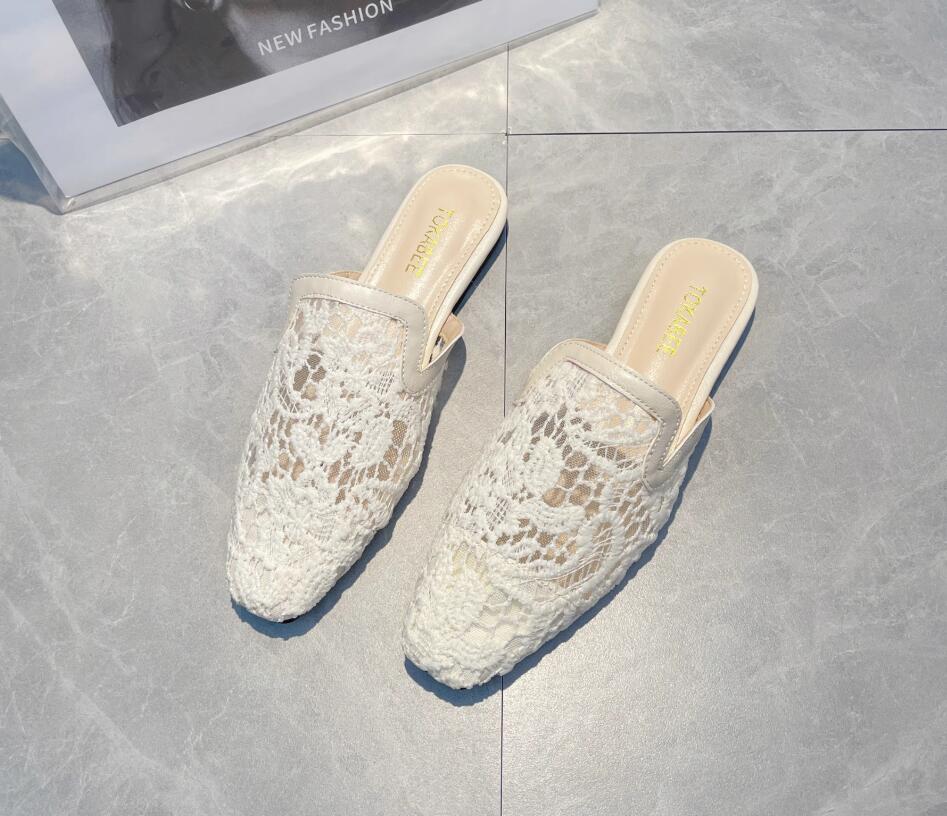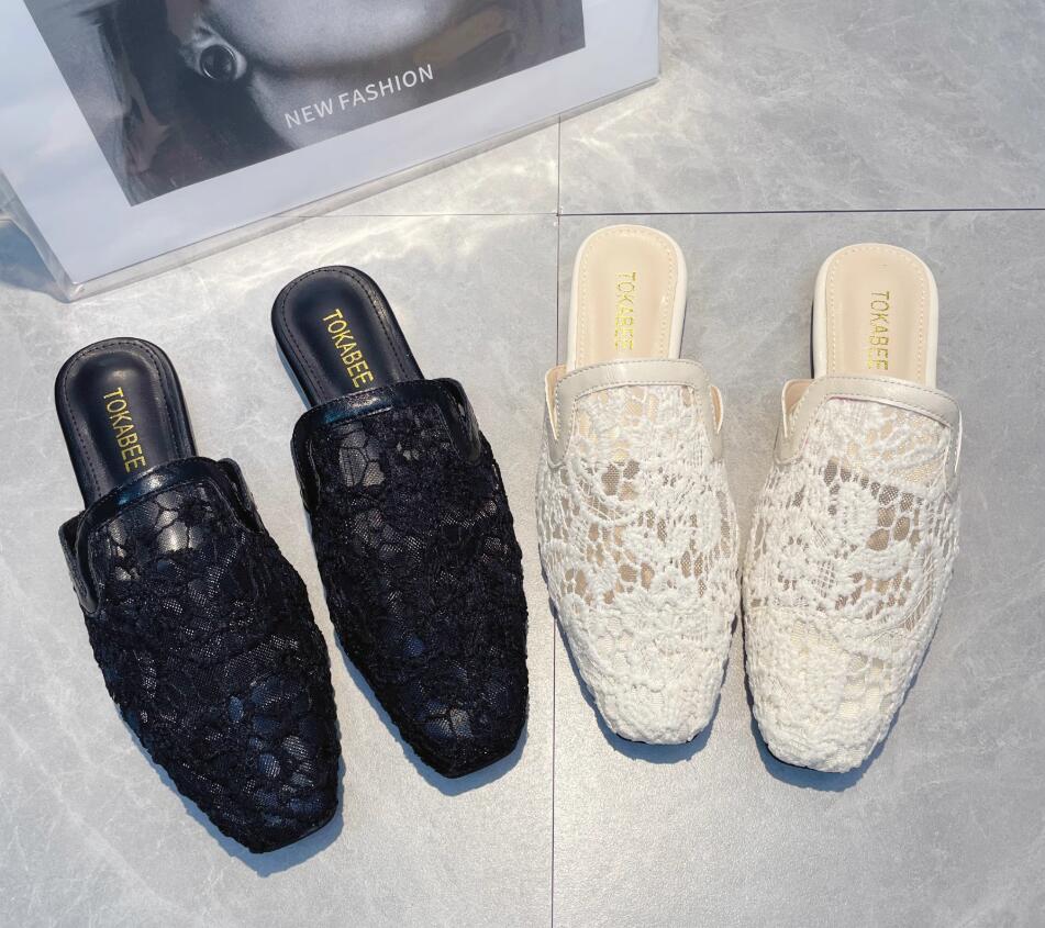 ミュール スリッパ 総レースパンプス夏 靴 人気 ホワイト ブラック 22.5cm 23cm 23.5cm 24cm 24.5cm 25cm 25.5cm