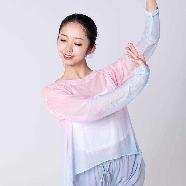 古典ダンスウェア 透け感長袖ブラウス トップス/ピンク(2180円) トップス/パープル(2180円) トップス/青(2180円) S M L