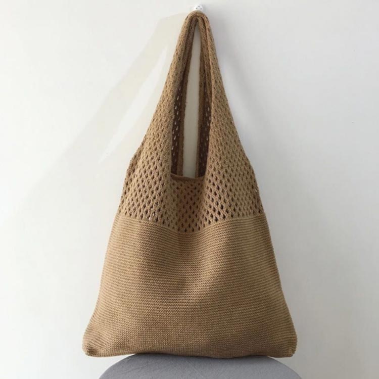 肩掛け トートバック バック ニット編 バッグ 小物 ブランド雑貨 続々登場 杏色 ブラウン ブラック ベージュ ブルー グリーン イエロー