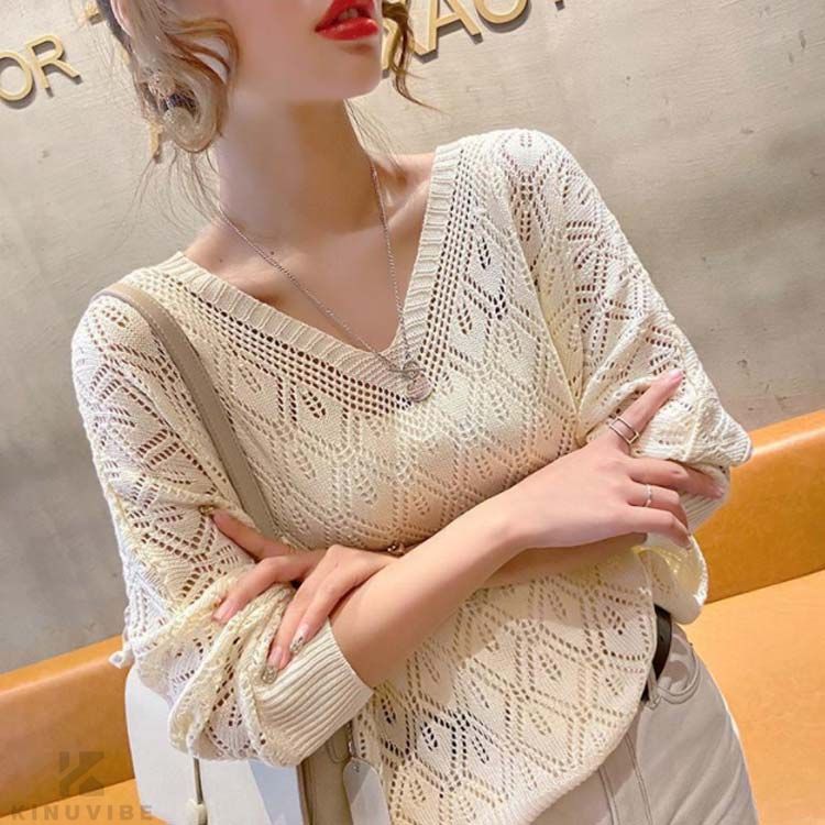 透かし編み トップス ニット 長袖 レ レディースファッション 豊富な品揃え ネイビー レッド ベージュ ダークグレー S M L XL 2XL