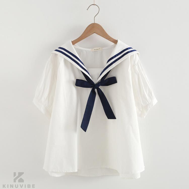 ブラウス 半袖 マリン風半袖 リボン 学生服 セーラー服 早い者勝ち ホワイト/ブルー ホワイト/ネイビー ストライプ ネイビー