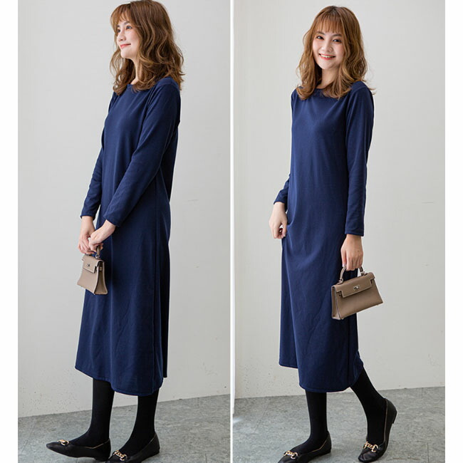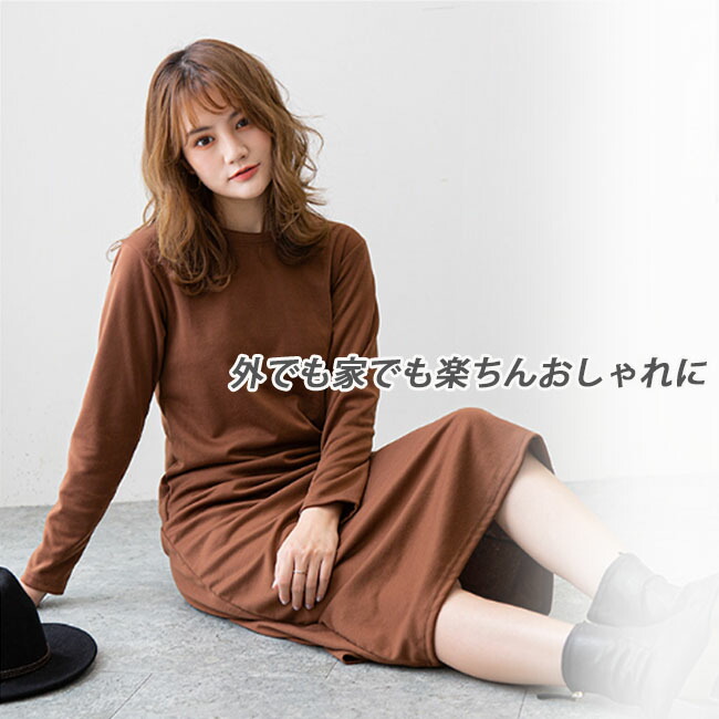 ロングワンピース ワンピース 裏起毛な ワンピース 新登場! ワイン カーキ ネイビー ブラウン コーヒー ブラック M L
