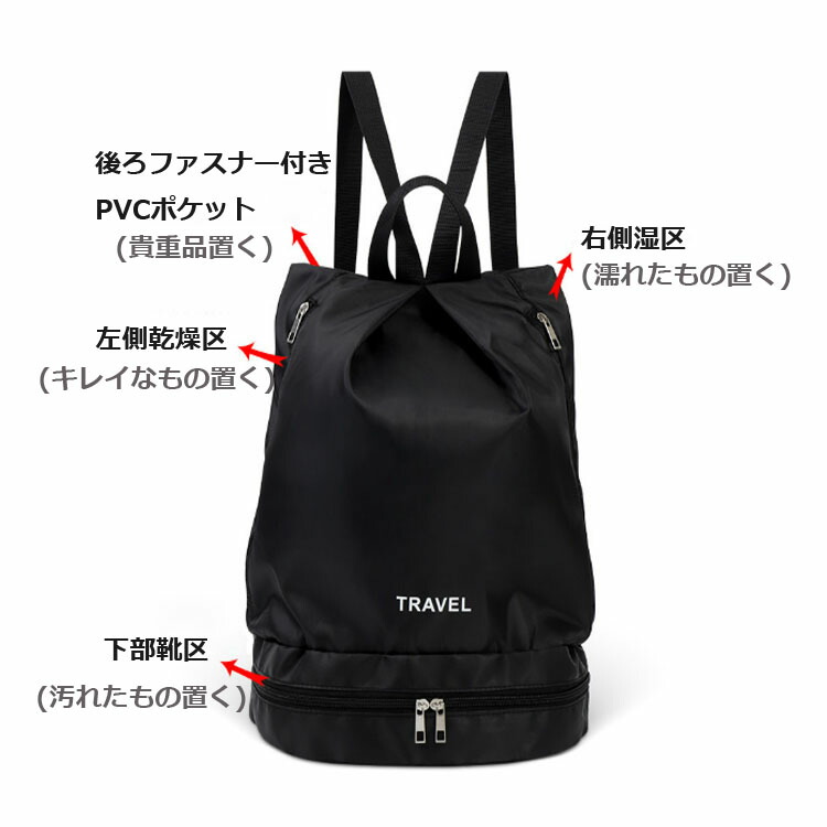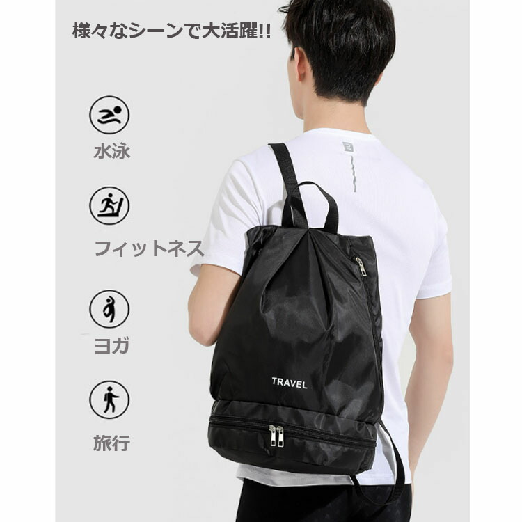 プールバッグ 男女 ナップサック 2層 バッグ 男女兼用バッグ バックパック リュック 豊富な品揃え BLACK PINK BLUE