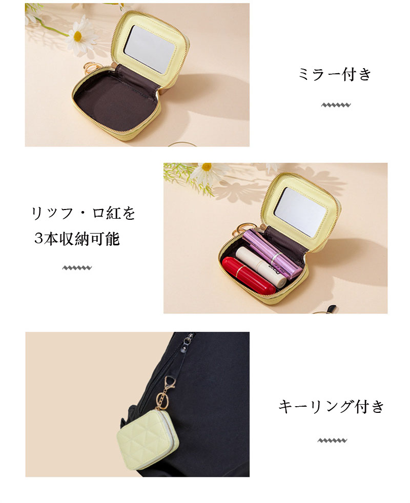 リップケース 化粧ポーチ PU 鏡付き ミラー付き ケース 口紅ケース 口紅入れ アクセサリーケース 小物入れ かわいい おしゃれ レディース 高級感 雑貨 プレゼント 女性用