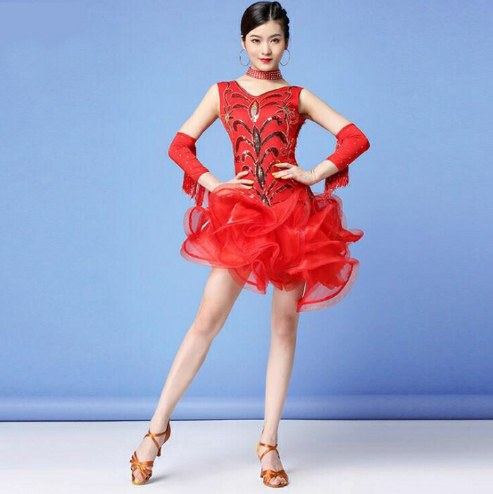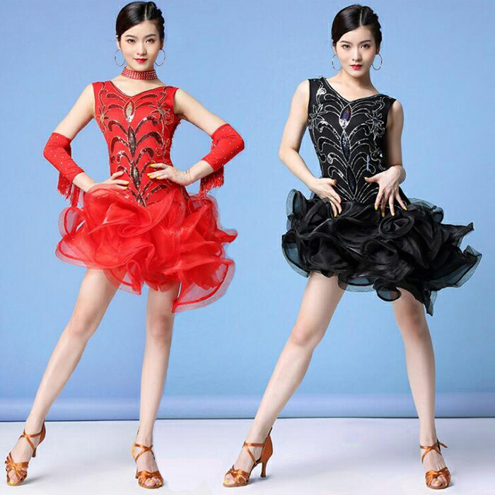 新作 レディースダンス衣装 女性 大人 ワンピース 新登場! ブラック レッド M L XL