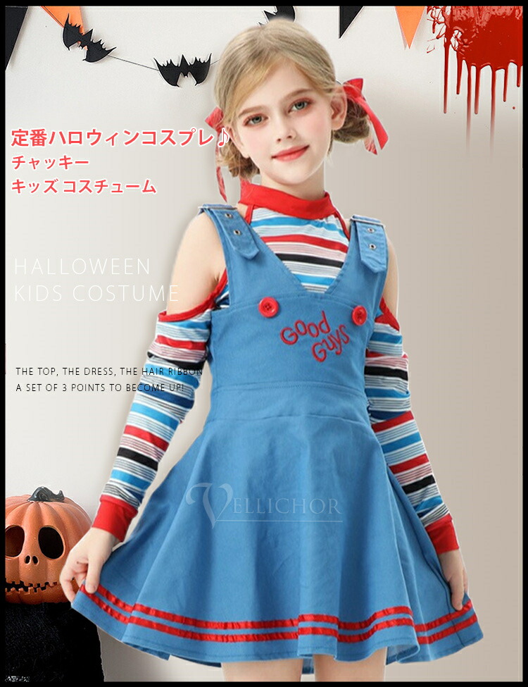 3点セット ハロウィン衣装 チャッキー コスプレ 変装 仮装 コスチューム一式 続々登場 110cm 120cm 130cm 140cm 150cm