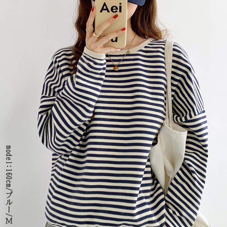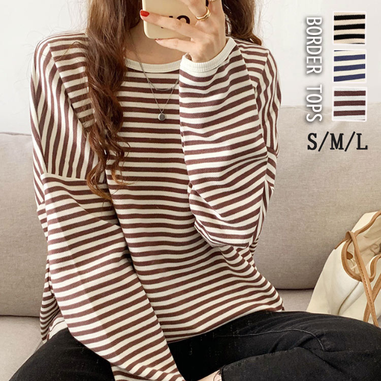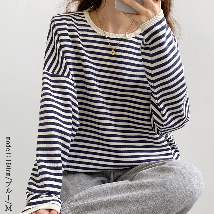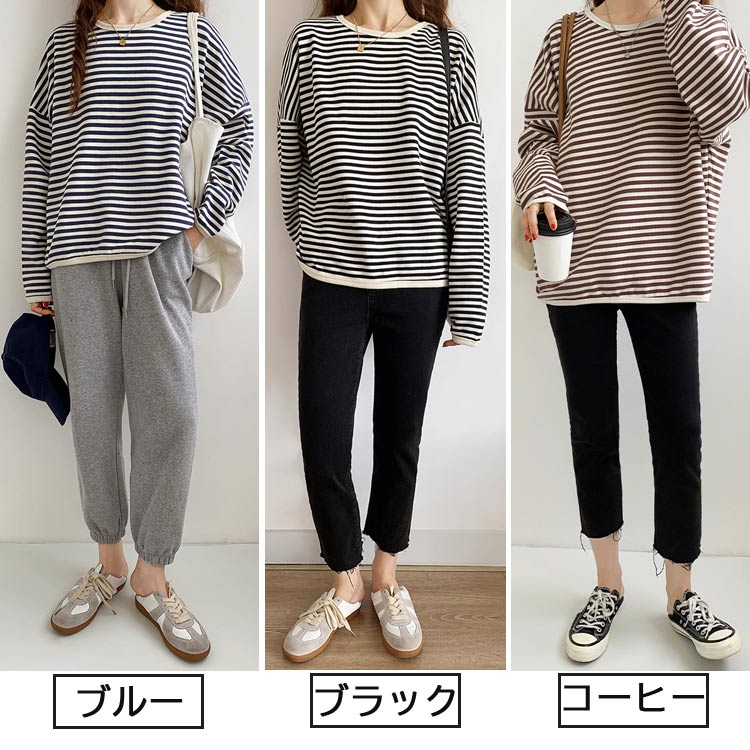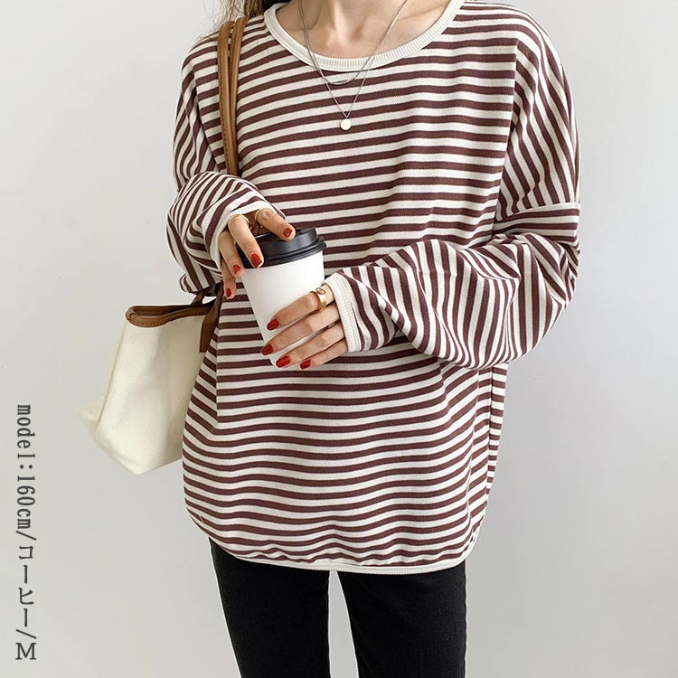 ボーダーロング Tシャツ レディース トップス Tシャツ カットソー 通販 ブルー ブラック コーヒー S M L