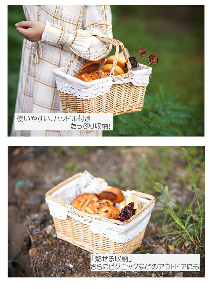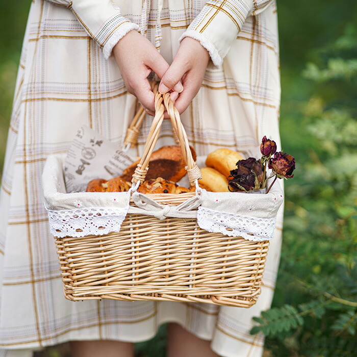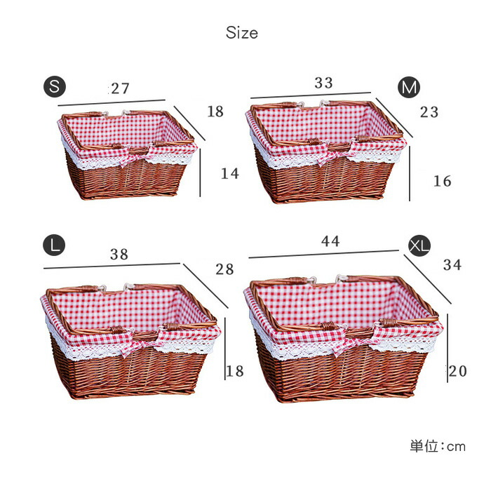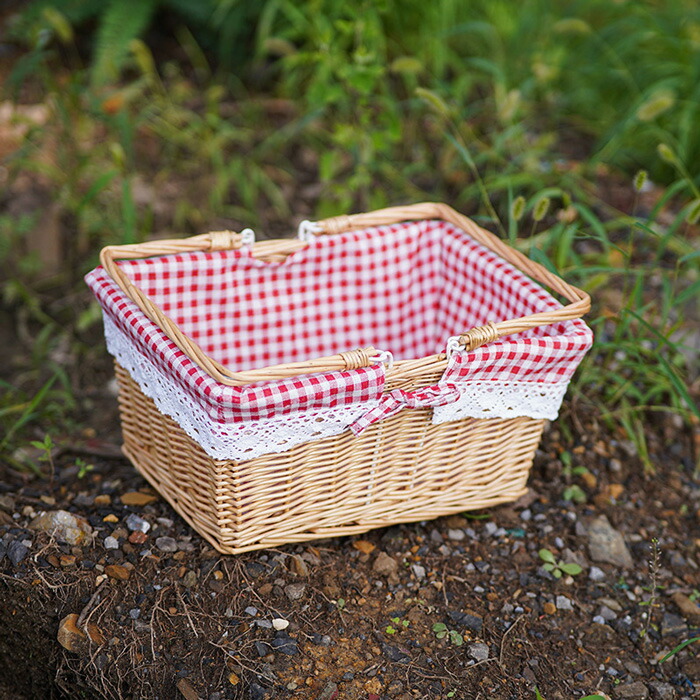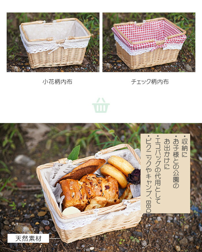 ピクニックバスケット かごバスケット 小花柄内布 チェック柄内布 S M L XL
