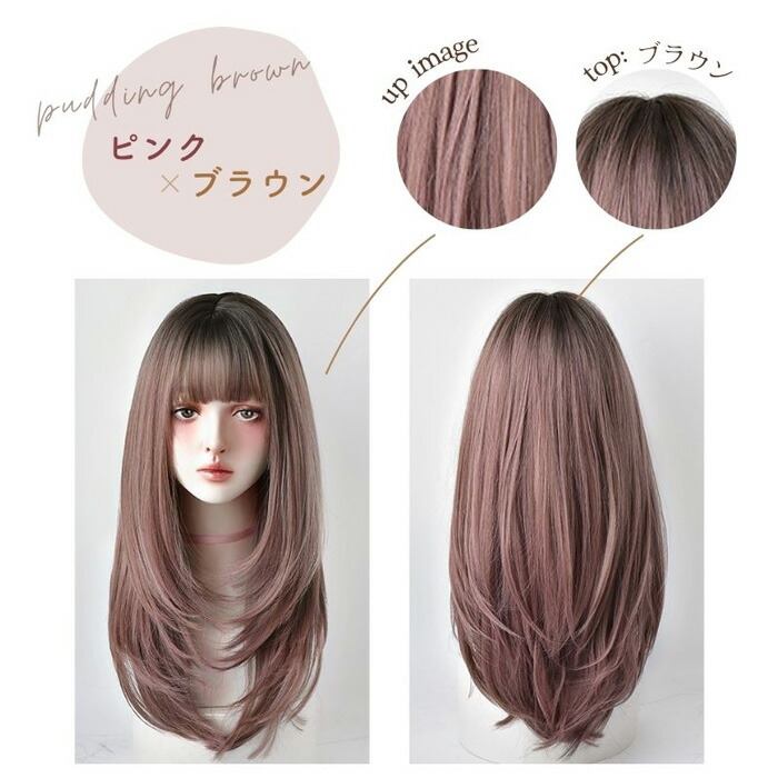 ウィッグ ロング レディース 自然 バ ウィッグ つけ毛 フルウィッグ 新登場! ピンク×ブラウン ミルクティー×ブラック ミルクティーブラウン ブラックブラウン アッシュブラウン
