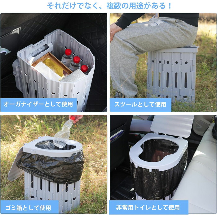 簡易トイレ ポータブルトイレ 折り畳み ブラック グレー