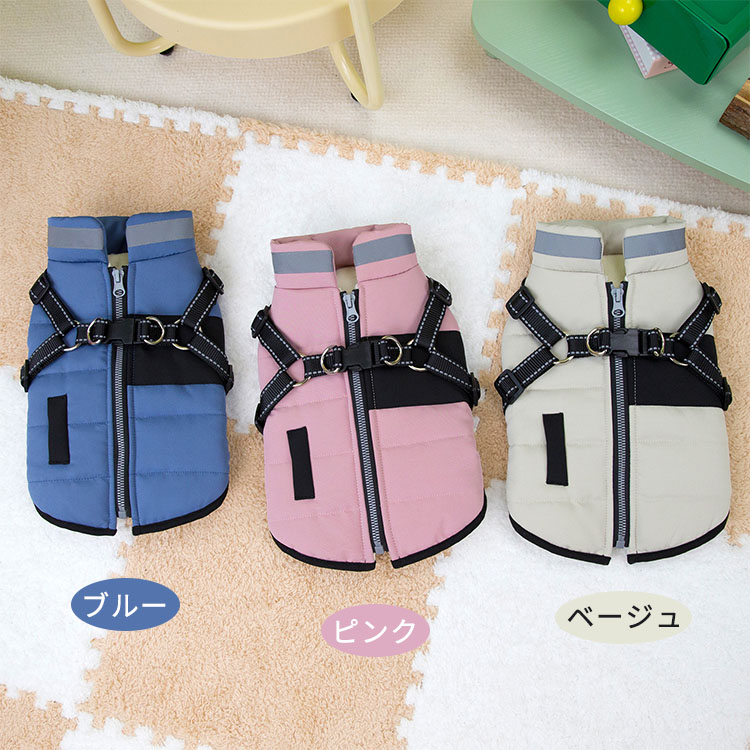 ハーネス一体型 ジャケット 犬服 背開 犬用品 ドッグウェア ジャケット 早い者勝ち ベージュ ピンク ブルー XS S M L XL