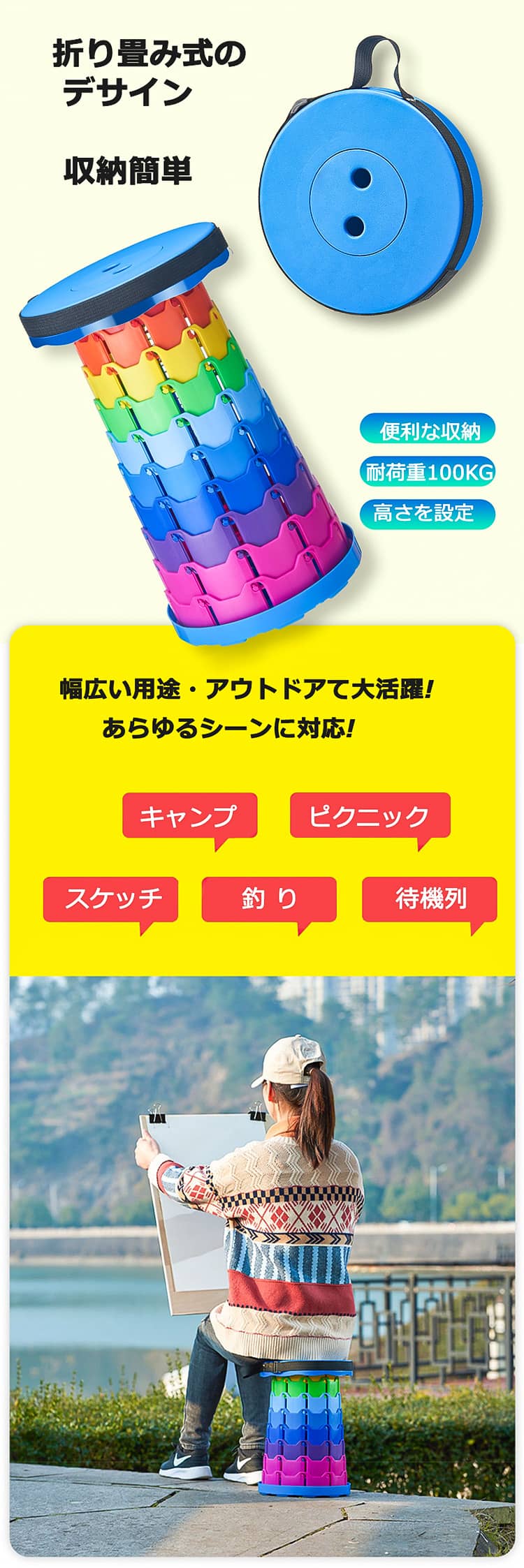 折りたたみ椅子 アウトドア チェア コ アウトドア イス テーブル レジャーシート イス 豊富な品揃え ブラック レッド ブルー 虹色