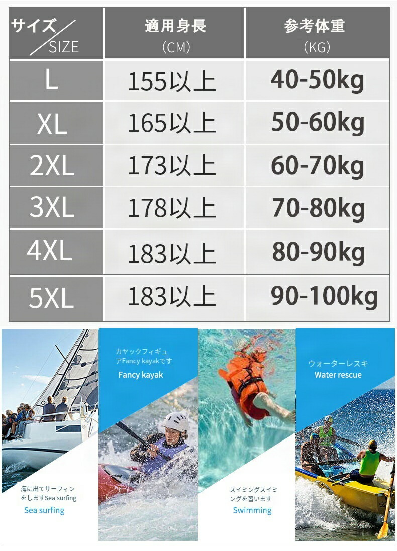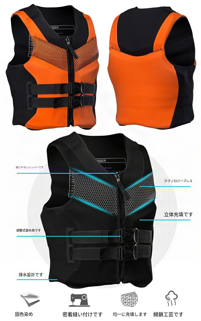 ライフジャケット フローティングベスト スポーツ アウトドア 超目玉商品 ブラック グレー オレンジ L:適用身長155-165cm(体重40-50kg) XL:適用身長165-175cm(体重60-70kg 2XL:身長173-178cm(体重70-80kg) 3XL:身長178-183cm(体重80-90kg)