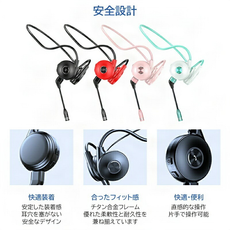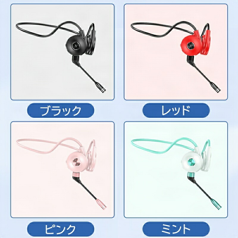 骨伝導 ヘッドホン Bluetooth ブラック レッド ミント ピンク