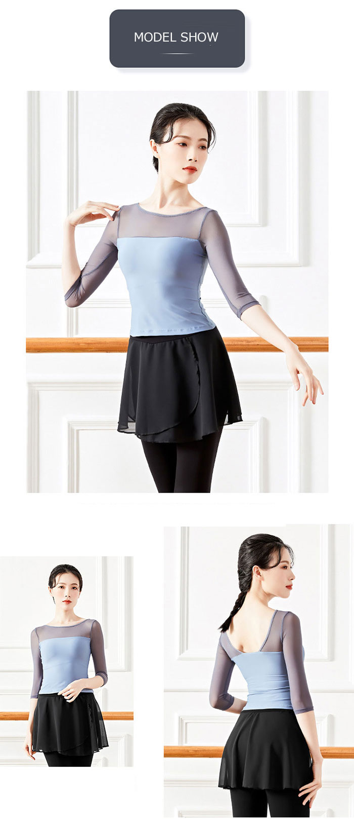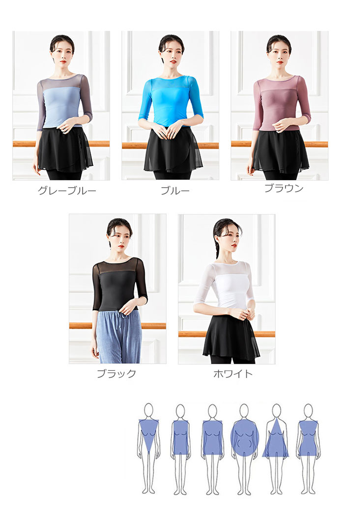 バレエ トップス 大人 五分袖 ダンス ホワイト ブラック ブルー グレーブルー ブラウン S M L XL XXL