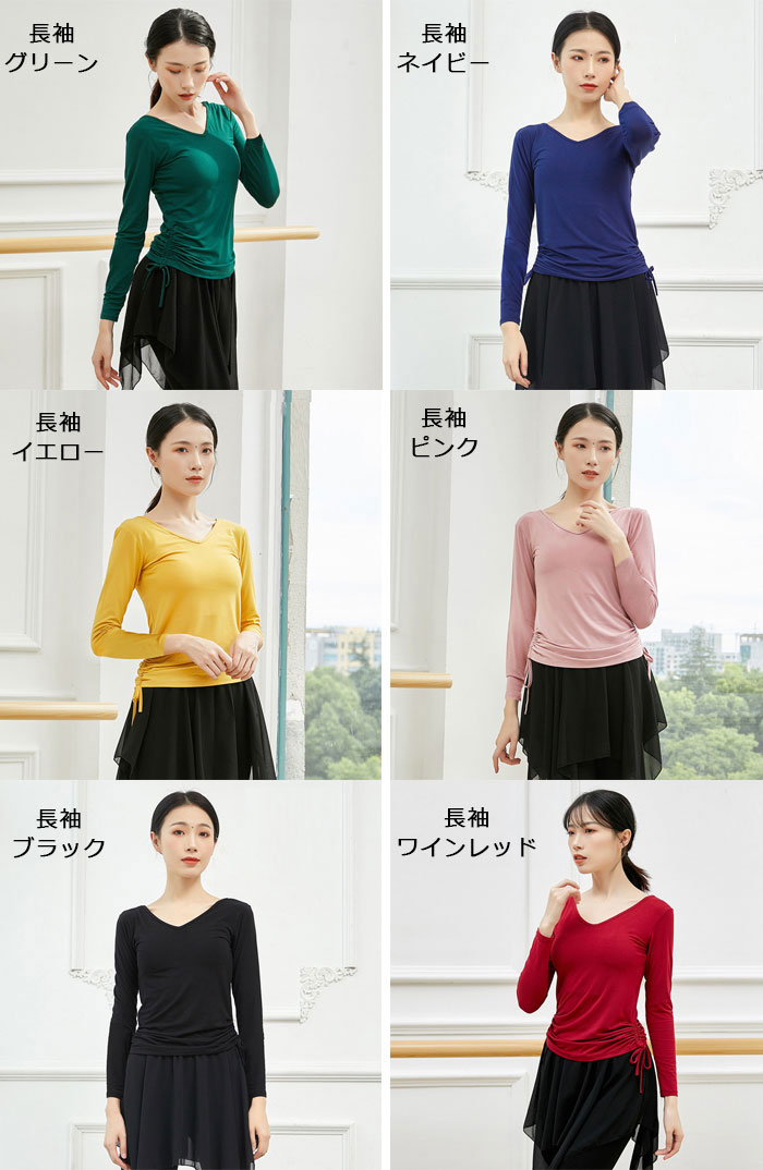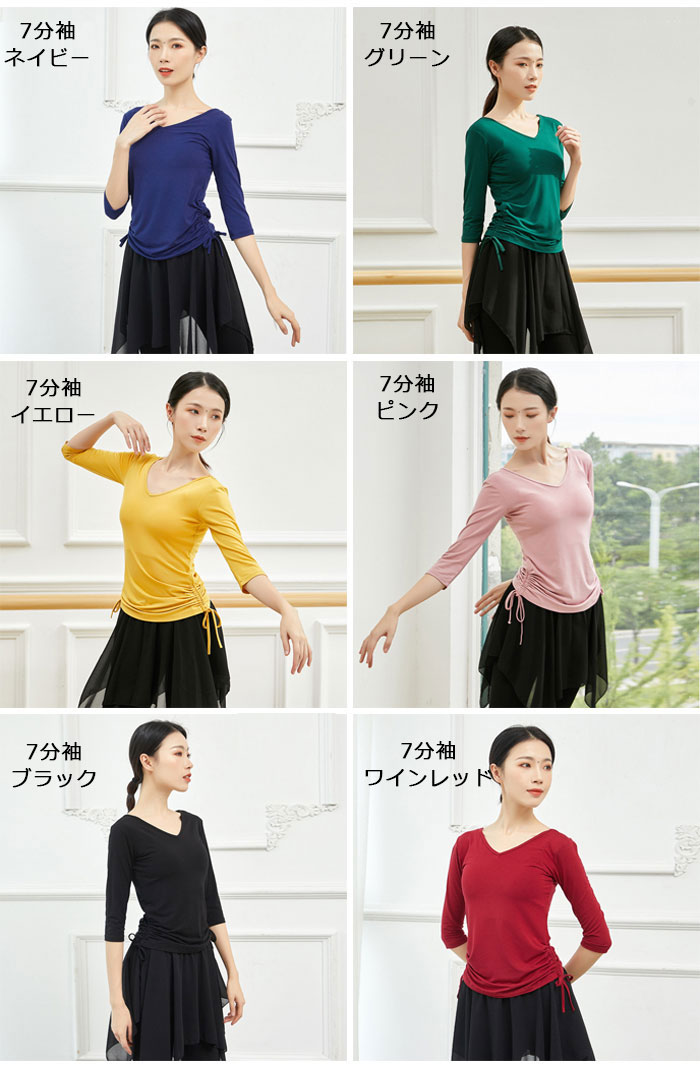 ダンス トップス バレエ ヨガ 長袖 S M L XL XXL XXXL 4XL 長袖-グリーン 長袖-ネイビー 長袖-イエロー 長袖-ピンク 長袖-ブラック 長袖-ワインレッド 7分袖-ネイビー 7分袖-グリーン 7分袖-イエロー 7分袖-ピンク 7分袖-ブラック 7分袖-ワインレッド 半袖-ネイビー 半袖-イエロー 半袖-ピンク 半袖-ブラック 半袖-ワインレッド