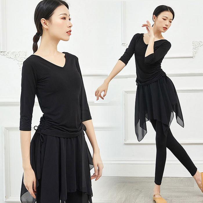 ダンス衣装 トップス シースルー 長袖 8分袖 メッシュ 肌隠し おしゃれ ダンストップス レディース 大人 ダンス 衣装 レッスン着 ストレッチ 動きやすい 発表会 演出用 エレガント バレ 練習着