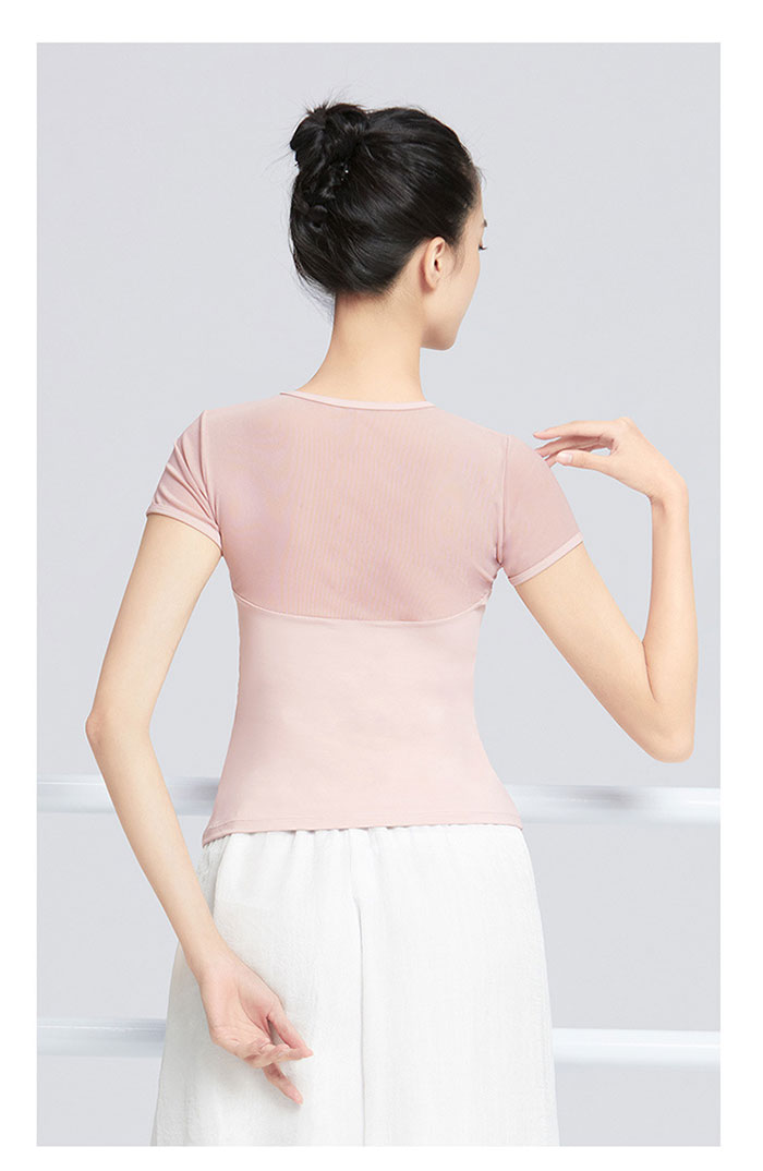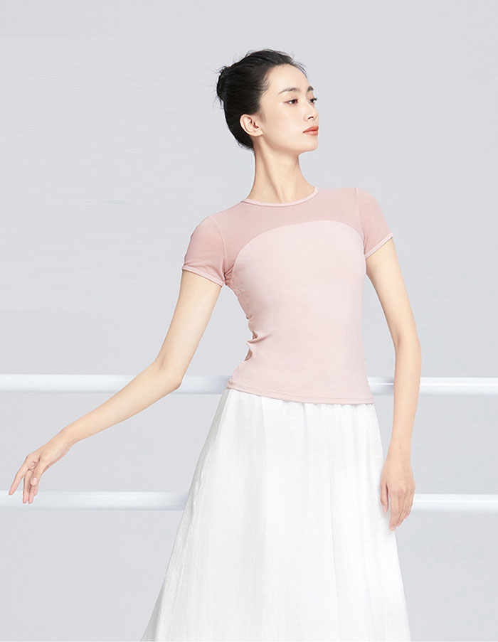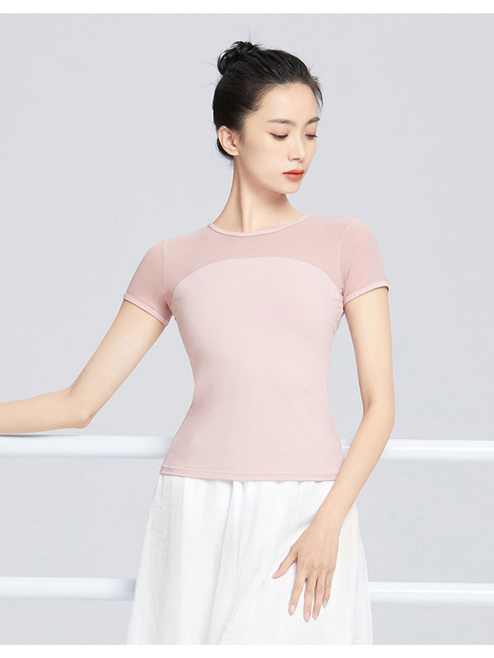 バレエ トップス 半袖 ストレッチメッ ブラック ホワイト ピンク グリーン S M L XL XXL