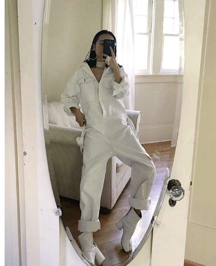デニムパンツ ビジュー付き