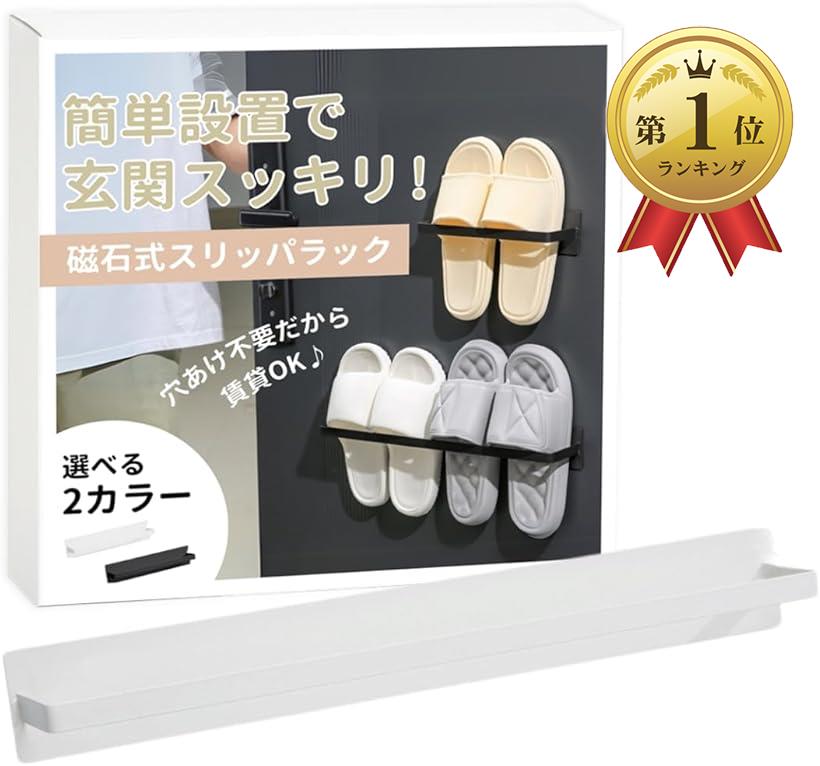 スリッパラック マグネット 壁掛け 収 ブラック ホワイト 25cmx6cm 46cmx6cm